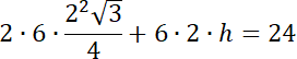 Wyznacz wysokość graniastosłupa prawidłowego, jeżeli jego podstawą jest sześciokąt, krawędź podstawy ma długość 2, a jego pole powierzchni całkowitej jest równe 24.