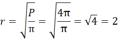 Oblicz promień koła jako pierwiastek z ilorazu jego pola i liczby PI.