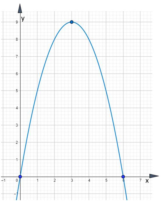 –funkcja ma dwa miejsca zerowe, ponieważ wykres paraboli przecina oś OX w dwóch punktach: (0,0); (6,0)