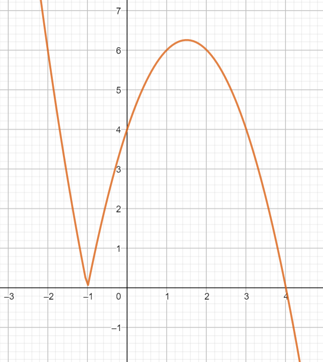 Aby naszkicować wykres funkcji, podziel jej dziedzinę na dwa przedziały w zależności od znaku wyrażenia pod wartością bezwzględną. Następnie w każdym przedziale uprość wzór przez opuszczenie wartości bezwzględnej i narysuj wykres otrzymanej funkcji kwadratowej.