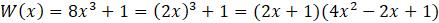 Wielomian W(x) jest podzielny przez dwumian 2x + 1.