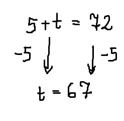 Przy strzałce zapisano -5. Musisz od obu stron odjąć 5.