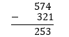 W tym zadaniu musisz obliczyć sumę 574 - 321 sposobem pisemnym.