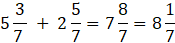 Całości dodajesz do całości, a licznik do licznika, mianownik pozostawiasz bez zmian.