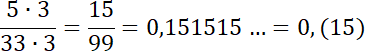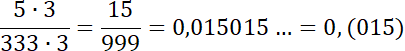 Rozszerz ułamki, mnożąc ich licznik i mianownik przez 3. Ułamek, którego mianownik to liczba składająca się z samych cyfr 9, ma rozwinięcie dziesiętne okresowe odpowiadające licznikowi tego ułamka. Okres zawsze składa się z tylu cyfr co mianownik, więc w niektórych przypadkach należy przed liczbą z licznika dopisać 0.