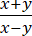 Iloraz sumy liczb x i y oraz różnicy liczb x i y.