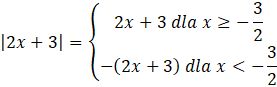 będzie równe 0, więc korzystając z definicji wartości bezwzględnej, zapisujemy: