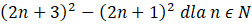 Zapisz w postaci działania matematycznego z użyciem liczb i znaków: dodatnią różnicę kwadratów dwóch kolejnych liczb naturalnych nieparzystych.