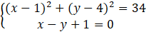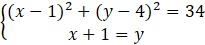 Rozwiąż układ równań, wyznaczając z równania prostej jedną niewiadomą, a następnie podstawiając zmienne do równania okręgu.