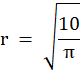 Pole koła jest równe 10, zatem możesz zapisać wzór na pole koła