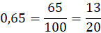 Zamień liczbę 0,65 na ułamek nieskracalny.