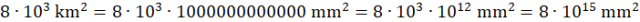 Aby zamienić km2 na mm2, ilość mm2, pomnóż przez 1 000 000 000 000 (ponieważ 1 km = 1 000 000 mm, a więc 1 km