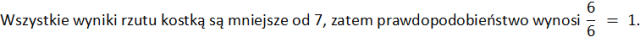 Oblicz prawdopodobieństwo wyrzucenia liczby oczek mniejszej od 7.