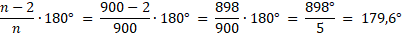 Wyznacz miarę kąta wewnętrznego dziewięćsetkąta foremnego.