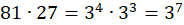 Najpierw zapisz liczby 81 i 27 w postaci potęgi liczby 3: