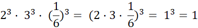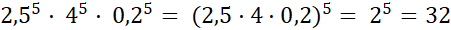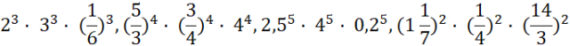 Zapisz działania w postaci potęgi iloczynu i podaj wynik:
