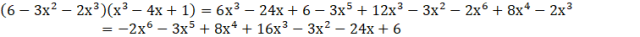 Przemnażamy każdy wyraz w nawiasie z każdym. Zapisujemy współczynnik przy najwyższej potędze oraz wyraz wolny.