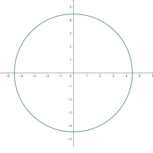 Okrąg w zadaniu ma środek w punkcie S(0,0) i promień długości