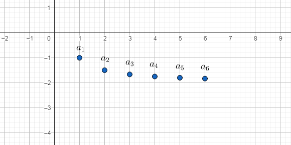 W tym zadaniu musisz obliczyć kilka początkowych wyrazów podanego ciągu, zaznaczyć je w układzie współrzędnych i na podstawie rysunku określić granicę tego ciągu.