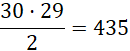 Wybieramy dwie osoby z 30-osobowej drużyny. Zgodnie z regułą mnożenia, ilość sposobów to iloczyn liczby osób przy wyborze pierwszej z nich i liczby osób pozostałych przy wyborze drugiej, podzielony przez dwa – nie ma znaczenia kolejność wyboru.
