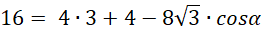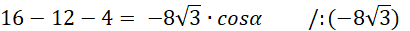 Określ miarę kąta αna podstawie otrzymanej wartości cosinusa.