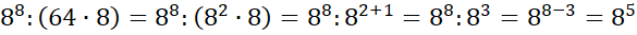 Wszystkie liczby podane w treści zadania zapisz za pomocą potęgi liczby 8. Skorzystaj z tego, że iloczyn potęg o takim samych podstawach możesz zamienić na dodawanie ich wykładników: