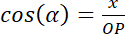 , gdzie x to współrzędna x punktu P.