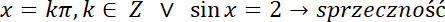 jest sprzeczne, ponieważ sinus przyjmuje tylko wartości z zakresu -1 do 1, zatem jedynymi rozwiązaniami są rozwiązania równania