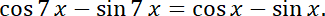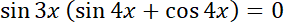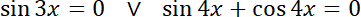 Aby rozwiązać równanie, zacznij od wykorzystania wzorów na różnice cosinusów dwóch różnych kątów oraz na różnicę sinusów dwóch różnych kątów. Następnie dodaj obustronnie wyrażenie sin 3x cos 4x. Wyłącz sin 3x przed nawias i rozdziel równanie na alternatywę dwóch prostszych równań. Przy rozwiązywaniu drugiego równania wykorzystaj wzór redukcyjny