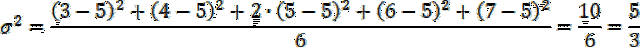 Na podstawie danych, oblicz średnią arytmetyczną, wariancję i odchylenie standardowe liczb 3, 4, 5, 5, 6, 7.