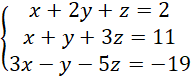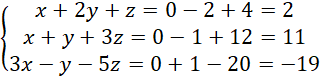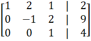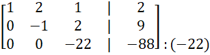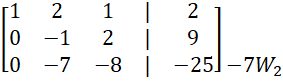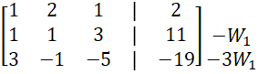 z trzeciego wiersza odejmując od niego trzykrotność wiersza 1, a następnie odejmując siedmiokrotność wierszu 2 oraz wartość