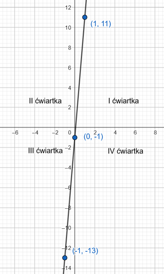 Zaznacz uzyskane punkty w układzie współrzędnych, narysuj prostą przechodzącą przez nie i zapisz przez które ćwiartki układu współrzędnych ona przechodzi.