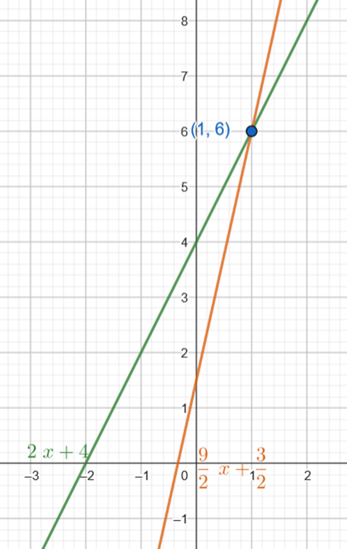 Naszkicuj wykresy obu wyznaczonych funkcji i odczytaj współrzędne ich miejsca przecięcia.