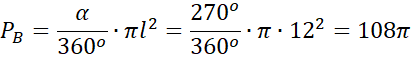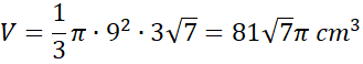 Wyznacz pole podstawy i objętość stożka dla , jeśli powierzchnią boczną stożka po rozwinięciu jest wycinek koła o promieniu 12 cm wyznaczony przez kąt środkowy .