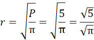 Oblicz promień koła jako pierwiastek z ilorazu jego pola i liczby PI.