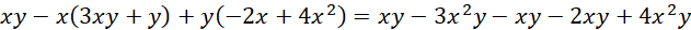 Wykonaj operacje mnożenia i dzielenia na podanych nawiasach. Pamiętaj, że zarówno dzielenie, jak i mnożenie nawiasu przez liczbę, to dzielenie lub mnożenie każdego elementu tego nawiasu przez tę liczbę. Następnie wykonaj operacje dodawania i odejmowania na zapisanych w wyrażeniach wyrazach podobnych. Pamiętaj, że kombinacje liter, ich iloczynów i potęg muszą być takie same, różnić się zaś mogą jedynie czynnikiem liczbowym.