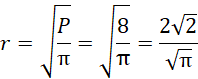 Oblicz promień koła jako pierwiastek z ilorazu jego pola i liczby PI.