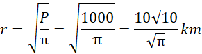 Oblicz promień koła jako pierwiastek z ilorazu jego pola i liczby PI.