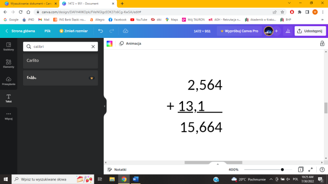 W tym zadaniu musisz wykonać dodawanie sposobem pisemnym.