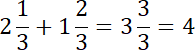 Dodając do siebie liczby mieszane, na początku zsumuj części całkowite, następnie zsumuj części ułamkowe. Jeżeli to możliwe, skróć część ułamkową. Gdy otrzymany ułamek jest ułamkiem niewłaściwym, wyciągnij całości i dodaj je do części całkowitej.