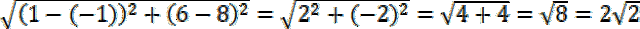 W celu obliczenia odległości między punktami A(xa, ya) i B(xb, yb) skorzystaj z następującego wzoru: |AB| =