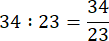 Iloraz 34 : 23 zapisz w postaci ułamka, pamiętając o tym, która z liczb to licznik, a która to mianownik.