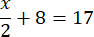 Podziel x przez 2, następnie dodaj 8 i powstałą sumę przyrównaj do 17: