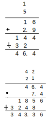 16 ∙ 2,9 ∙ 7,4 = 46,4 ∙ 7,4 = 343,36