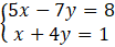 Rozwiąż układ równań metodą podstawiania. Z jednego z równań wyznacz zmienną y, a następnie wstaw ją do drugiego równania, wyznaczając zmienną x. Kolejno oblicz drugą niewiadomą.