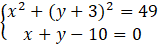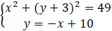 Rozwiąż układ równań, wyznaczając z równania prostej jedną niewiadomą, a następnie podstawiając zmienne do równania okręgu.