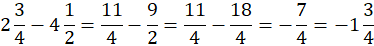 Zamień mieszany na ułamek niewłaściwy. Następnie sprowadź ułamki do wspólnego mianownika i wykonaj odejmowanie. Na końcu zamień ułamek niewłaściwy na mieszany.
