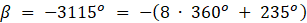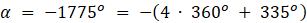 Kąt α to suma czterech wielokrotności kąta pełnego oraz kąta 335o, kąt β to suma ośmiu wielokrotności kąta pełnego oraz kata 235o, zatem ramiona końcowe tych kątów nie pokrywają się.