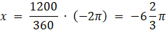 Miarę łukową kąta podanego w stopniach możesz wyznaczyć, korzystając z informacji, że -360o to -2π radianów, i układając odpowiednią proporcję: