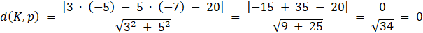 W tym zadaniu musisz wyznaczyć odległość punktu K od prostej p, korzystając z odpowiedniego wzoru.